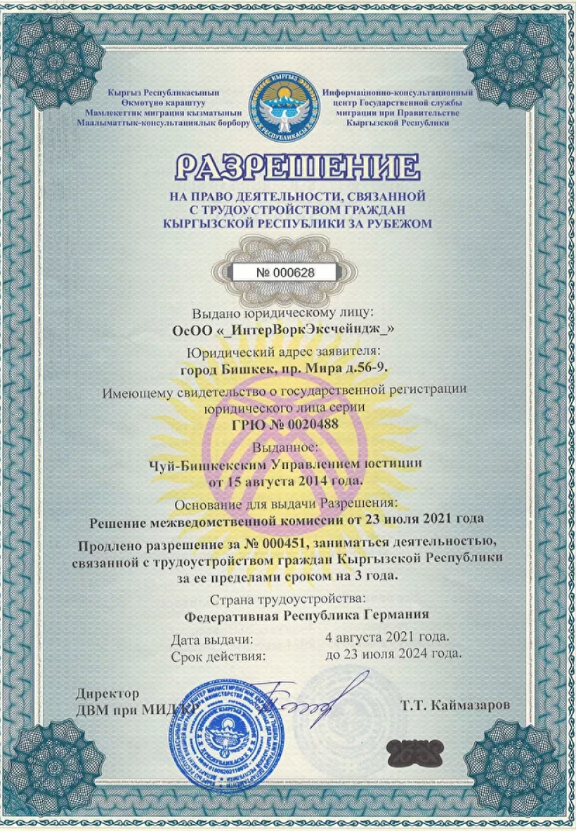 Мы на рынке более 14 лет и одними из первых начали оказывать помощь гражданам Кыргызстана в трудоустройстве и обучении за рубежом)